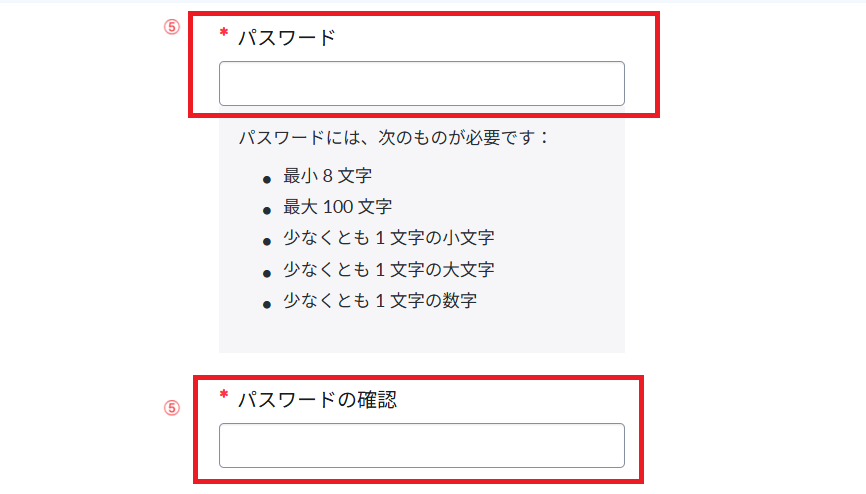 条件を満たしたパスワードが作成できたら、パスワードの確認欄に再度入力してください。