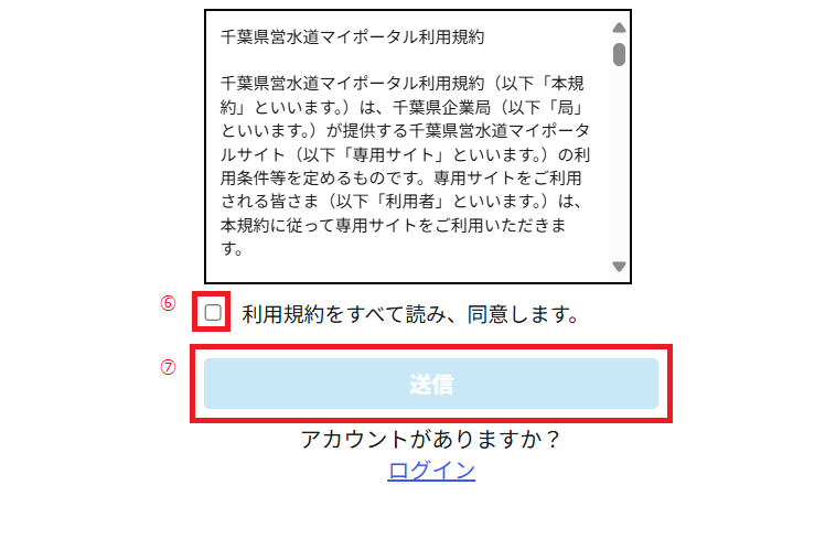 「利用規約をすべて読み、同意します。」にチェックを入れてください。
