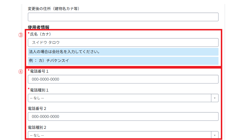 ④ 電話番号・電話種別
