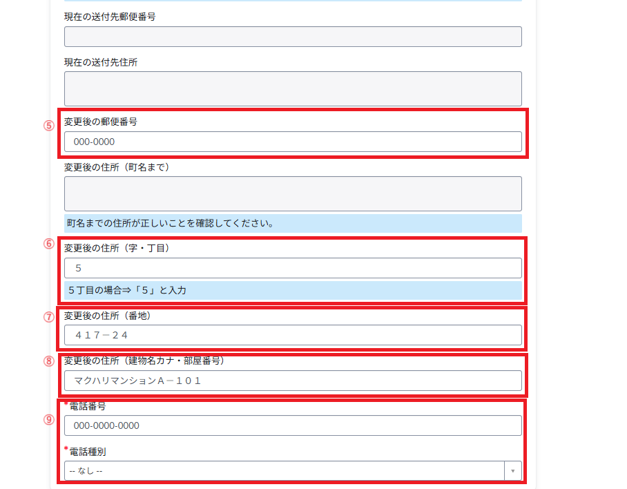 ⑤ 変更後の郵便番号