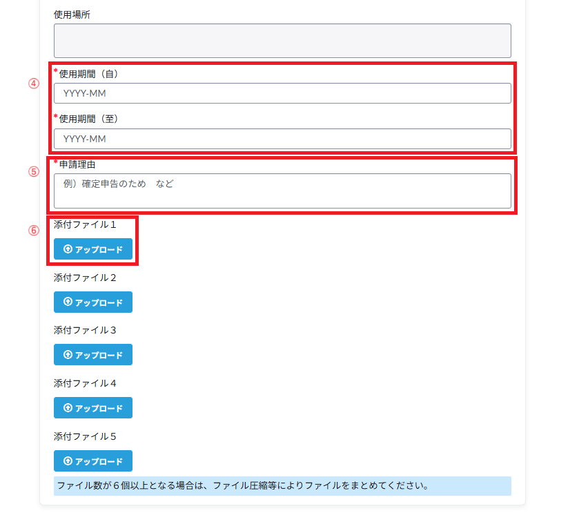 ⑥ 添付ファイル